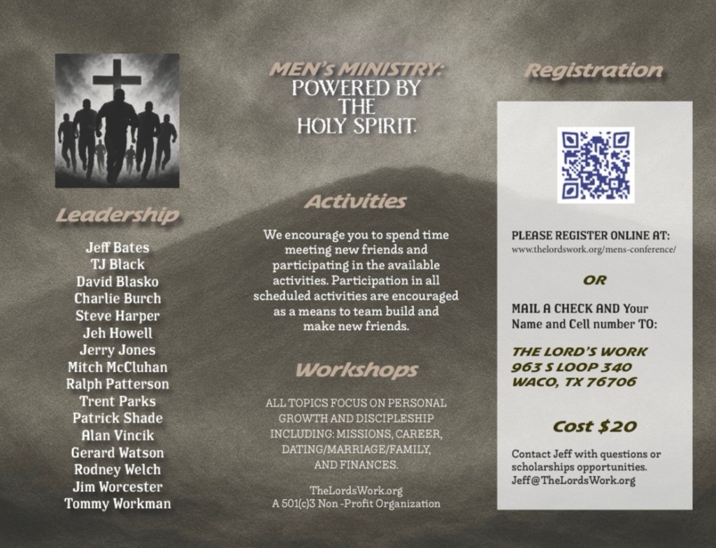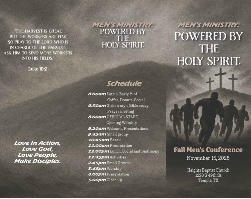 Men’s Conference 11/15/2025 https://buytickets.at/thelordswork/19 Share this: Click to share on X (Opens in new window) X Click to share on Facebook (Opens in new window) Facebook Like Loading...